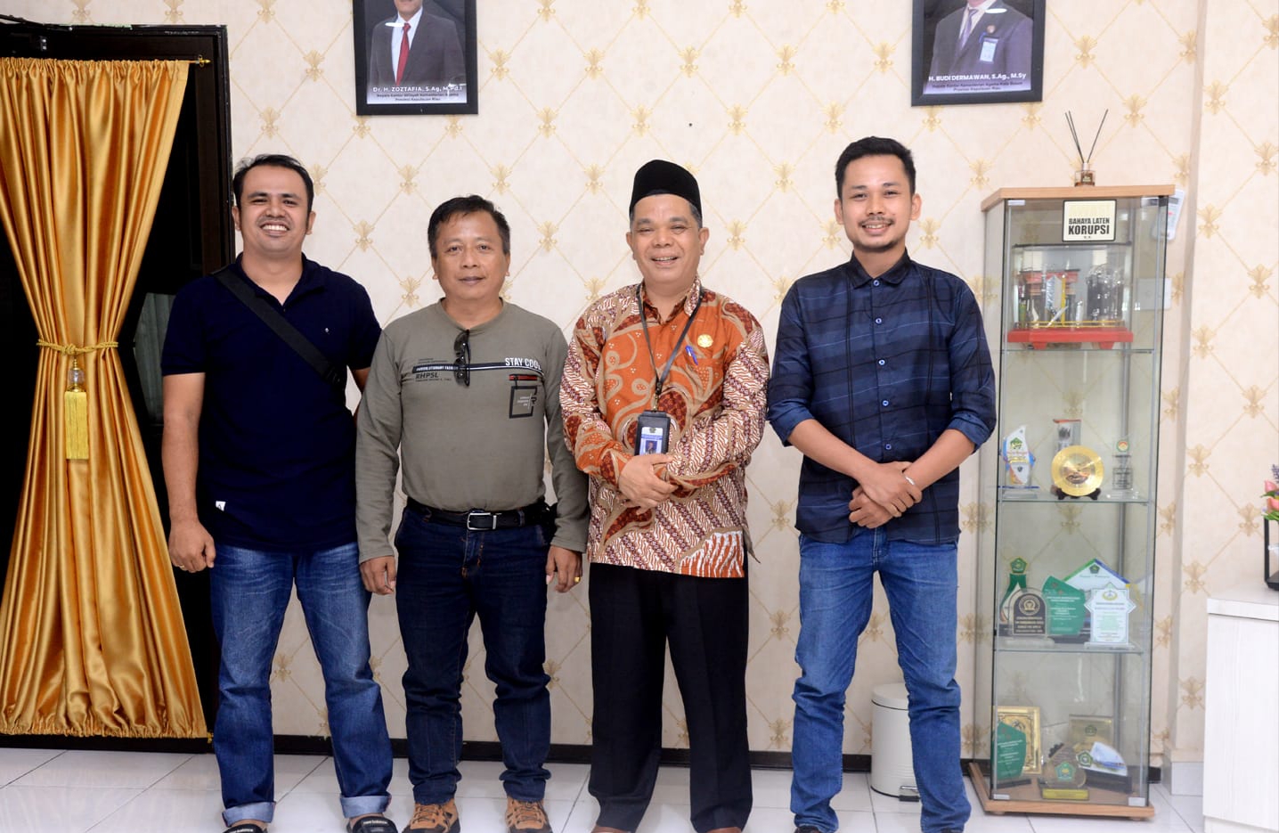Ketua PJMI Kepri, Ifan, Bendahara Kamal, bersama Kepala Kantor Kemenag Batam, Budi Dermawan. (Foto: GN)
