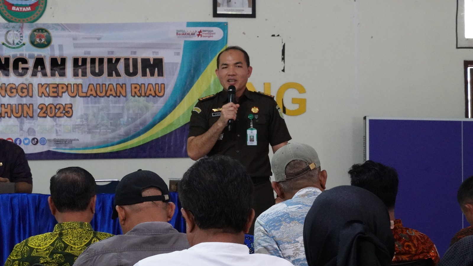Kegiatan ini dipimpin Kasi Penkum Kejati Kepri, Yusnar Yusuf, SH. MH bersama tim penerangan hukum, serta diikuti aparatur pemerintahan, tokoh masyarakat, kader PKK, pengurus LAM, Babinsa, Bhabinkamtibmas, dan perwakilan warga dengan jumlah peserta sekitar 65 orang.